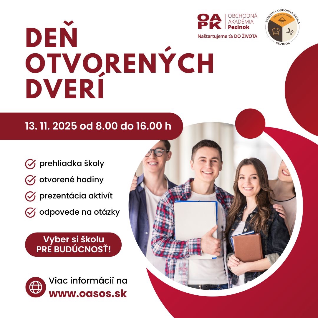 Počas Dňa otvorených dverí radi privítame všetkých záujemcov o štúdium v oboch organiazčných zložkách, t. j. Obchodnej akadémii aj SOŠ podnikania a služieb.